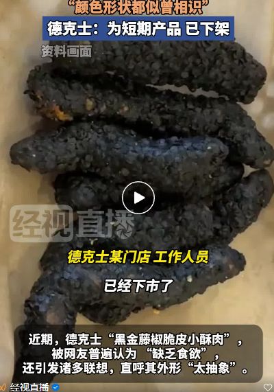 近日,不少网友纷纷对德克士的“黑金藤椒脆皮肉”发表评论。该产品因呈拉长的蛋形且表面附着一层黑色颗粒,普遍被网友认为“没胃口”。它还联系了许多协会,并称其外观“太抽象”。黑金色的藤酥肉表面覆盖着一层黑色的颗粒。 10月9日,经济观察网记者就此事联系了德克一家门店的工作人员。该工作人员回应称,“黑金葡萄椒脆皮肉”属于短期供应产品,初夏时就已下架。它仍然在市场上。这是由于部分商店库存销售缓慢所致。卖完股票之后,就不再继续给予了。网友们纷纷吐槽,他还补充说,这种小酥肉独特的外观吸引了很多顾客购买,有时甚至是热销品。钍其外层的黑色并非来自其他染色成分,而是被乌贼墨包裹着。至于未来该产品是否会被退回货架,工作人员表示目前还不清楚。来源:京视直播 记者:金媛媛 (来源:京视直播)
