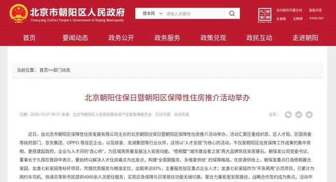 据北京朝阳官网消息,北京朝阳住房保障日暨朝阳区保障性住房推介活动隆重举行。近日,由北京朝阳区保障性住房开发有限公司承办的北京市朝阳住房保险日暨朝阳区保障性住房推介活动隆重举行,区委组织部、区人才局、州区国集团等政府部门齐聚一堂。此次以“住房人才”为核心的活动,不仅是朝阳区住房保障工作成果的集中展示,更是搭建起政府、企业、人才之间的“连接桥梁”,为全区高质量发展注入住房动能。 “吾塔斯别墅”和“建房之家”两大主打品牌,是保障性住房的根基。超宝发公司党委书记、董事长于九祥讲话中表示,要始终围绕解决人才住房痛点,构建“全周期服务、多维度供给”的保障格局。在住房供应方面,超宝发致力于开发无他晨光家园、金盏彩屋等标杆项目。通过优质的服务和准确的定位,就业率达到93%,主要输送来自片区重点企业的人才;金站彩屋作为“双用”示范项目,已为新市民提供了司机、快递员网约车等4000余项居住服务,实现了应急保障与日常生活功能的无缝衔接。转产努力拓宽修路,战略合作迹象成为焦点。活动期间,朝鲜宝发公司与北京电子城高科技集团有限公司、北京联机签署战略合作协议ia房地产经纪有限公司分别。未来,各方将在住房扩建、信息共享、专业服务等方面深度合作,打破资源壁垒,让更高品质的住房资源流向人才。主交接仪式上,来自中国工业互联网研究院、北京华信医院、北京欧珀通信有限公司(OPPO)的企业代表,以及大学生、肺草建设者、送货员、滴滴司机等个人代表出席。活动期间,北京欧珀通信有限公司(OPPO)、北京华信医院还向潮宝发公司赠送了锦旗。鲜红的锦旗上写着“爱企助力企业安居,暖心护航引才”,既是对住房保障工作的验证,也是对未来服务的期望。描绘未来蓝图,探索“太阳”面对编制“十五五”规划之际,朝阳宝发公司将立足朝阳区文化优势、国际化、大面积绿化优势,以“全生命周期理念”为未来发展奠定基础。活动期间,区人才局、区房管局和超宝发公司领导共同为新落成的“人才安居服务中心”揭牌。该服务平台包括政策咨询、住房匹配、合同签订等功能,将“人才安居服务中心”的启动,也标志着朝阳区人才安居服务进入专业化、常态化的新阶段,安防日活动的成功举办,是朝阳区“以安住住、以人才促发展”的生动实践。未来,随着更多保障性住房项目的落地、更优政策的出台和更全面的服务覆盖,朝阳必将成为创新人才创业的沃土,为构建和谐世界、和谐宜居城市注入持续活力。看看邻居们在做什么?跟随朝阳老家,看看朝阳的大事琐事,寻觅帝都的吃喝玩乐。咨询客服:Jiasupao2014。法律顾问:北京市恒略律师事务所。咨询微信:jwbei2 ■ 注:本文由朝阳之家编辑发表。打印时请注明图片来自网络。版权归原作者所有。如有违规,请联系我们删除。封面图片与内容无关。 ■ 信息来源:北京朝阳微信公众号、北京交通广播